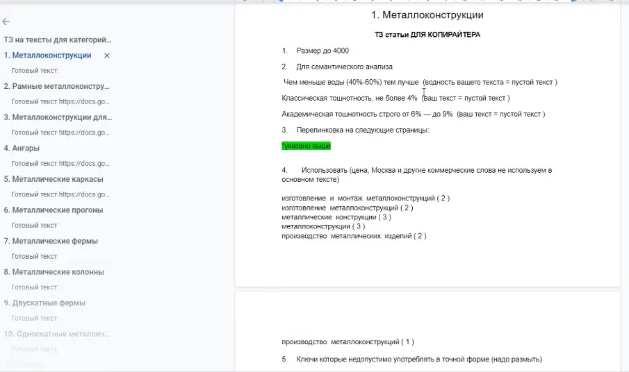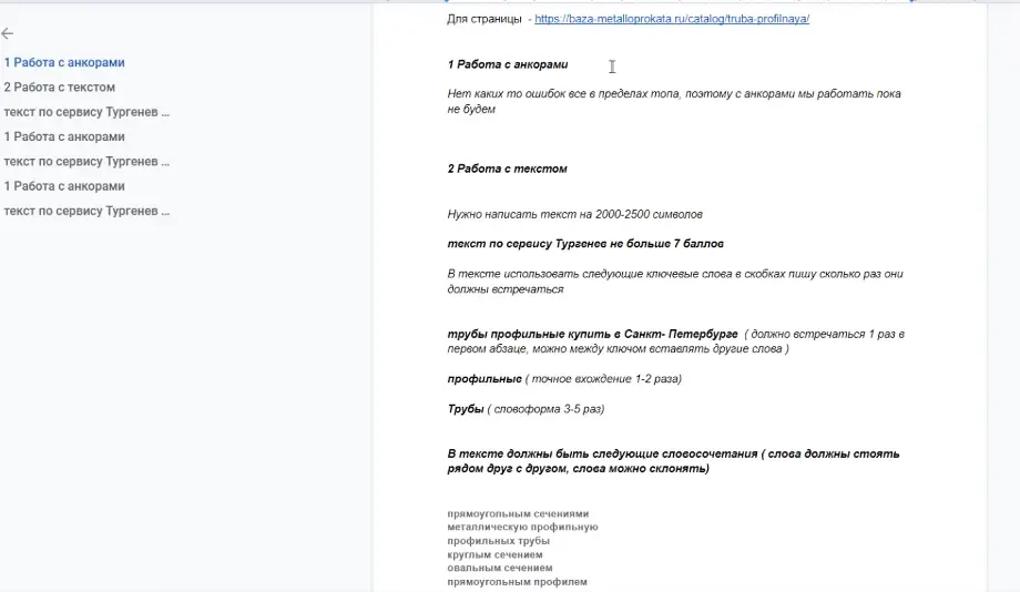 Отдельное внимание было уделено текстовому наполнению страниц категорий и подкатегорий. Для этих целей разрабатывались подробные ТЗ, учитывающие требования к плотности ключевых слов, их формам, точным вхождениям и сочетаниям.