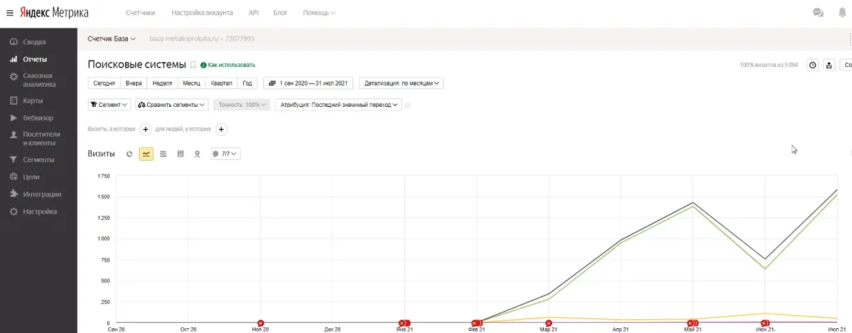 Анализ статистики трафика демонстрирует стремительный рост после преодоления кризисной ситуации. Уже в июле 2021 года посещаемость сайта превысила показатели доковидного мая, а дальнейший рост продолжается.