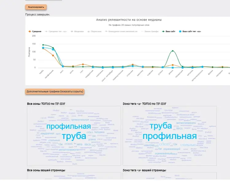 Параллельно с разработкой структуры велась работа над формированием семантического ядра для продвижения. Используя передовые инструменты, такие как гибридный анализатор и модуль "Термины", специалисты собрали и проанализировали все релевантные ключевые слова, обеспечивая максимальное семантическое покрытие.