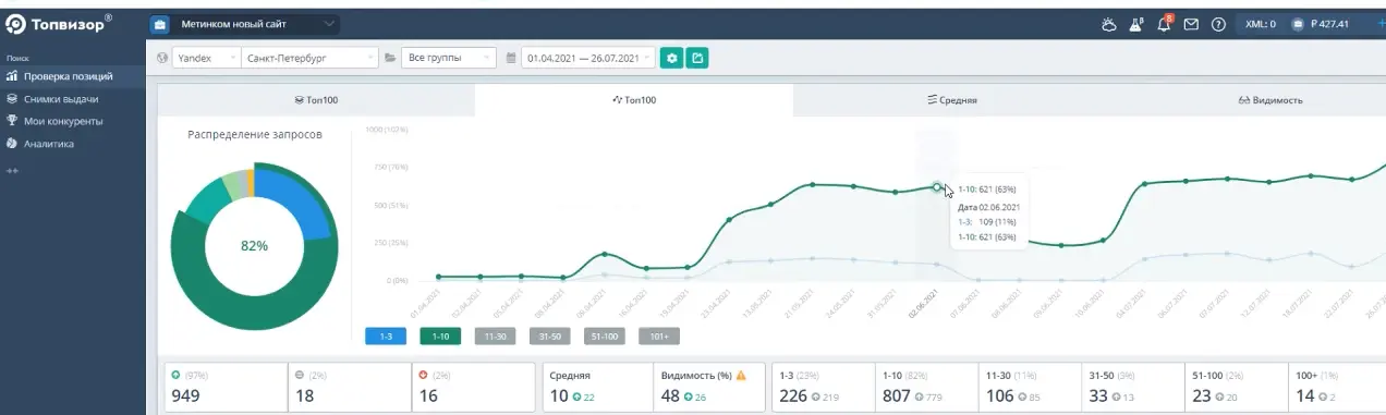 Несмотря на серьезный удар, нанесенный критической ошибкой, команде "Новорега" удалось не только полностью восстановить позиции в выдаче Яндекса, но и добиться впечатляющих результатов.