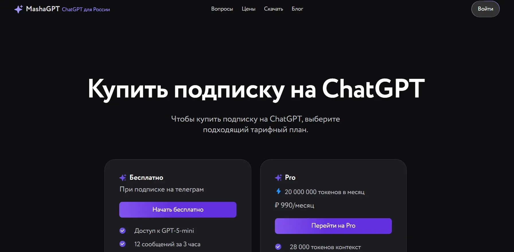 - MashaGPT — Самый доступный русскоязычный AI с бесплатными ежедневными запросами и полным набором функций