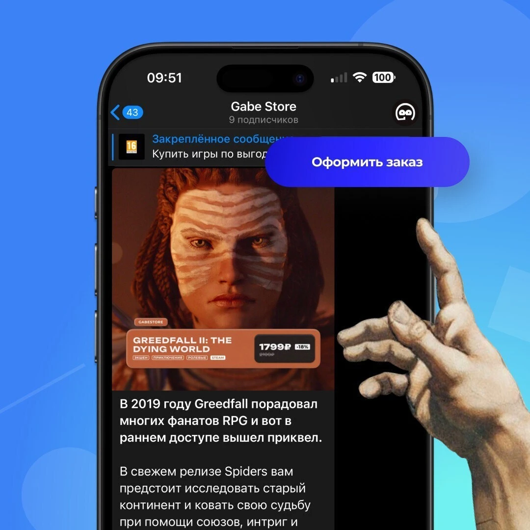 Магазин легко интегрируется в Telegram-канал, клиенту достаточно одного клика, чтобы моментально попасть на страницу с товарами, минуя долгие переходы на другие платформы. Клиенту не требуется авторизация на внешнем сайте — его данные уже доступны в мессенджере. Это ускоряет процесс покупки и повышает конверсию.