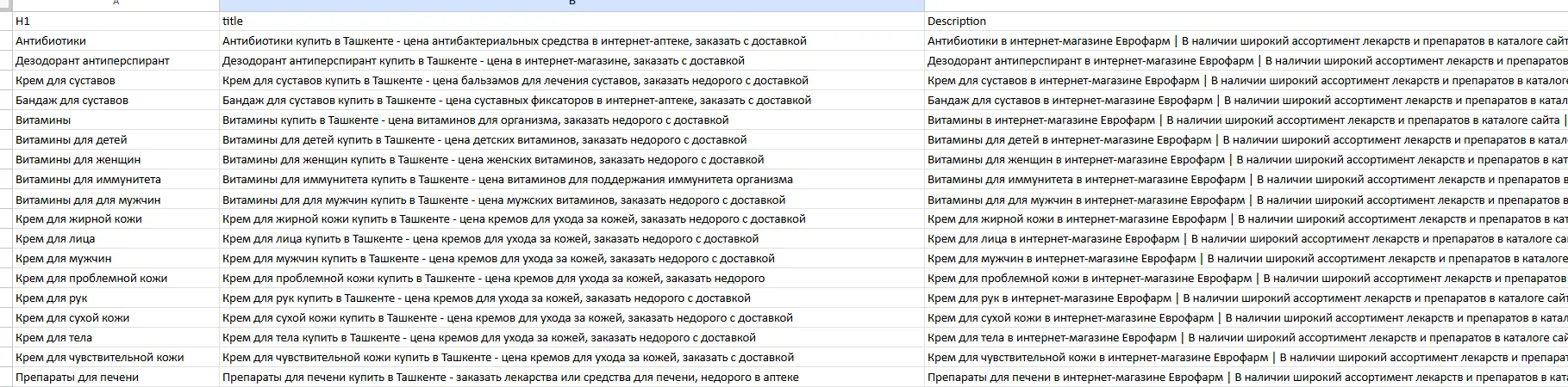 Домен europharm.uz являлся главной точкой входа на сайт, поэтому оптимизация главной страницы под ключевые коммерческие запросы была приоритетной задачей.