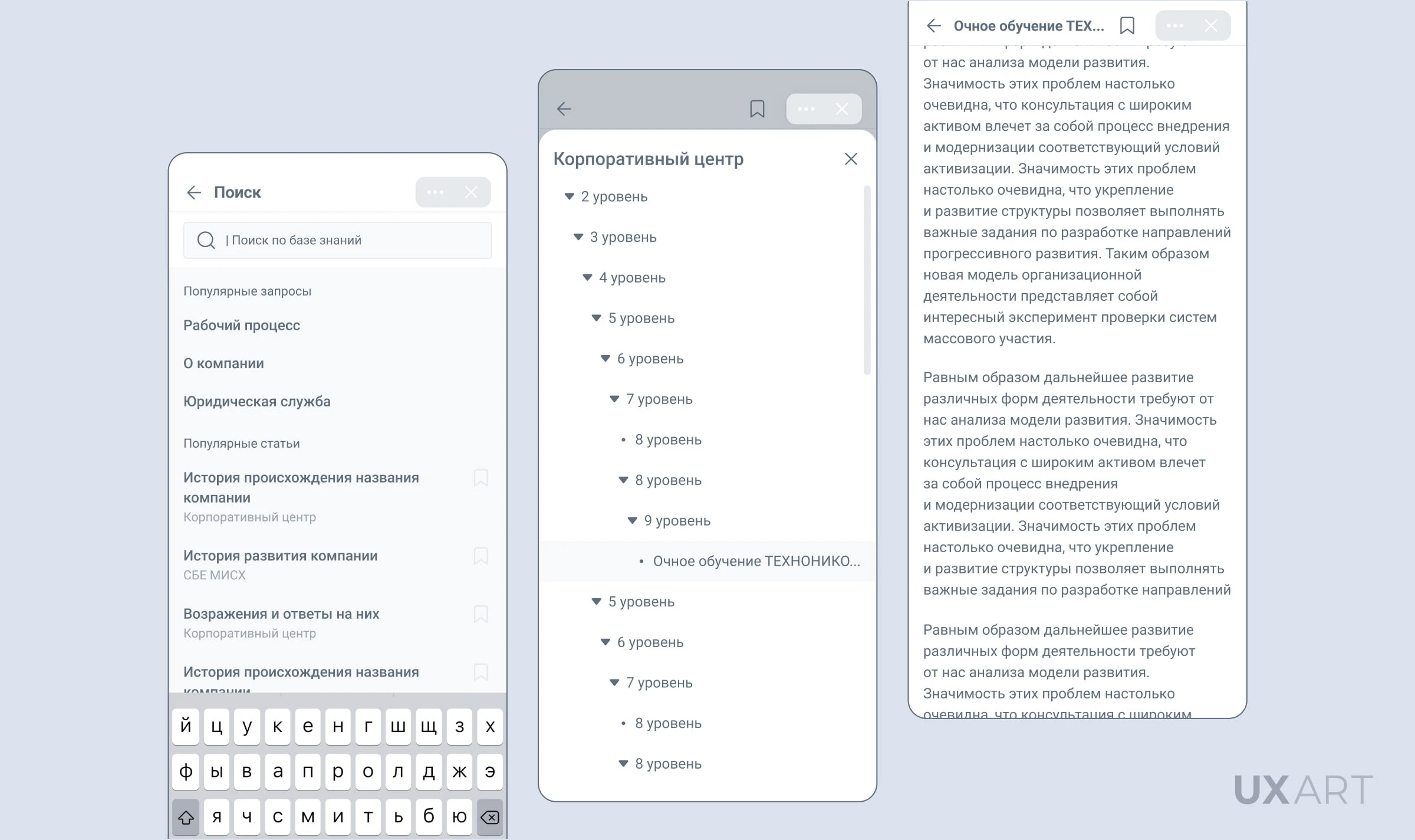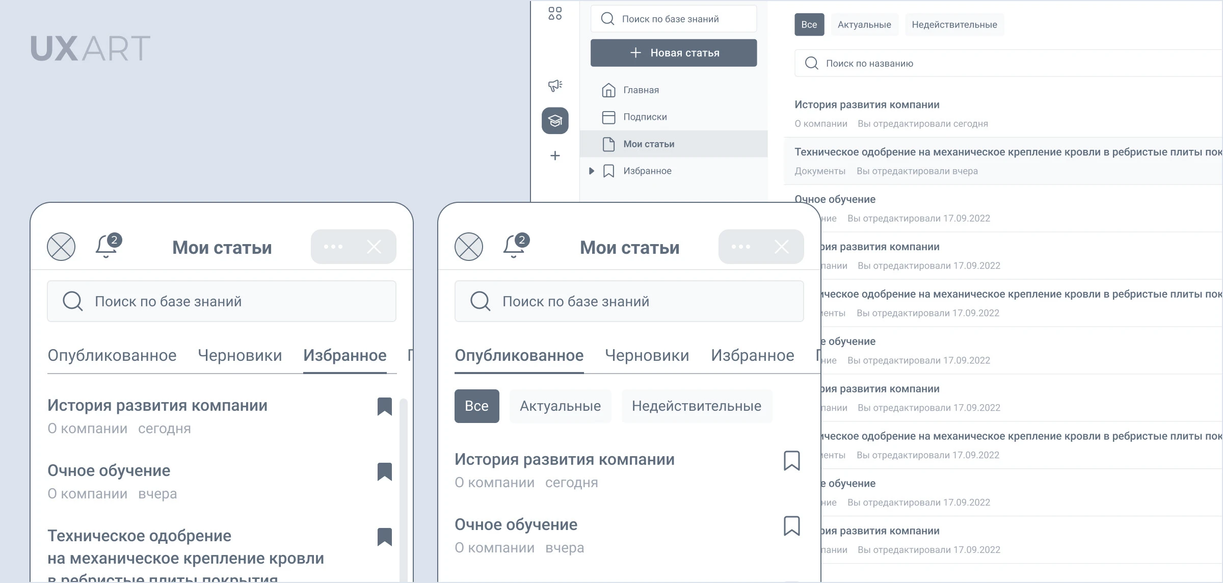 Навигация, удобство и скорость поиска информации — одна из самых важных функций базы знаний, все главные решения касаются именно этого.