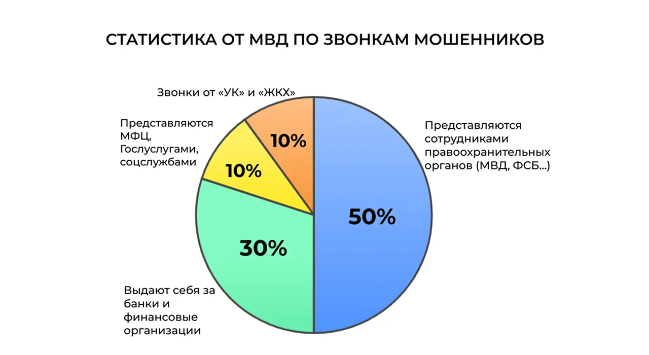 📞 В половине случаев (50%) преступники выдают себя за сотрудников правоохранительных органов и других госструктур — МВД, ФСБ, Росфинмониторинга, РКН. Рассказывают страшные истории про «неправомерный доступ к счетам» и «финансирование запрещенных организаций».