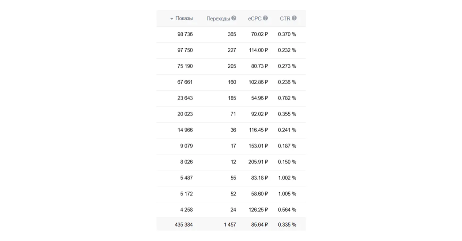 Накопленный опыт, включающий множество проверенных рекламных связок (креативы, тексты, сегменты целевой аудитории), позволяет нам успешно масштабировать успешные решения на аналогичные проекты по всей стране.