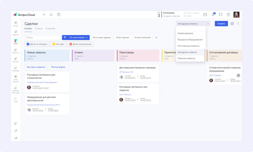 Команда «Бэст» решила начать с CRM-системы для отдела продаж. При изучении рынка выбор пал на Аспро.Cloud из-за широкого функционала и разумной стоимости.