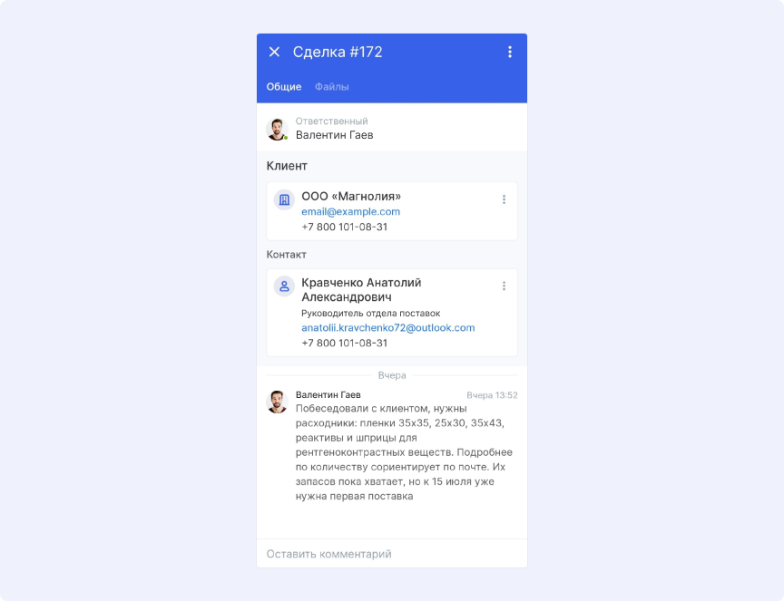 «Мне больше не нужно каждую пятницу разбираться в отчетах менеджеров. Я в любой момент могу открыть CRM, провалиться в историю взаимодействия, послушать записи телефонных разговоров и электронные письма», — рассказывает о новых возможностях контроля Владимир.