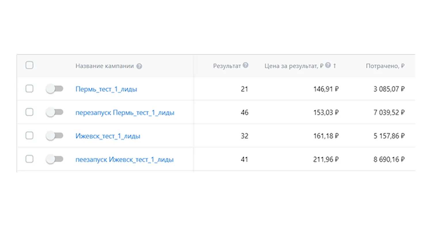 По Москве стоимость лида была повыше, чем в регионах, но все равно мы укладывались в KPI.
