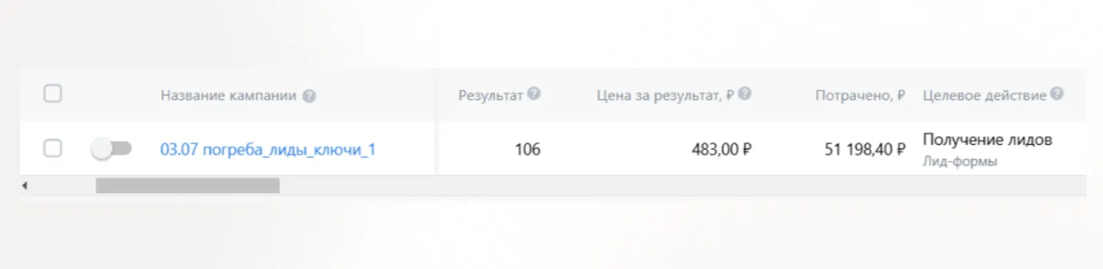 KPI: Стоимость лида ≤ 1000 рублей для обеспечения рентабельности.