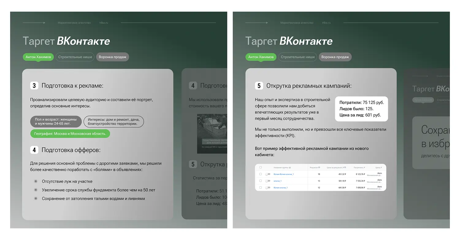 Ранее они уже тестировали таргет ВК, но результат был неудовлетворительный — лиды были слишком дорогие. Гораздо дороже чем в Яндексе и Авито.