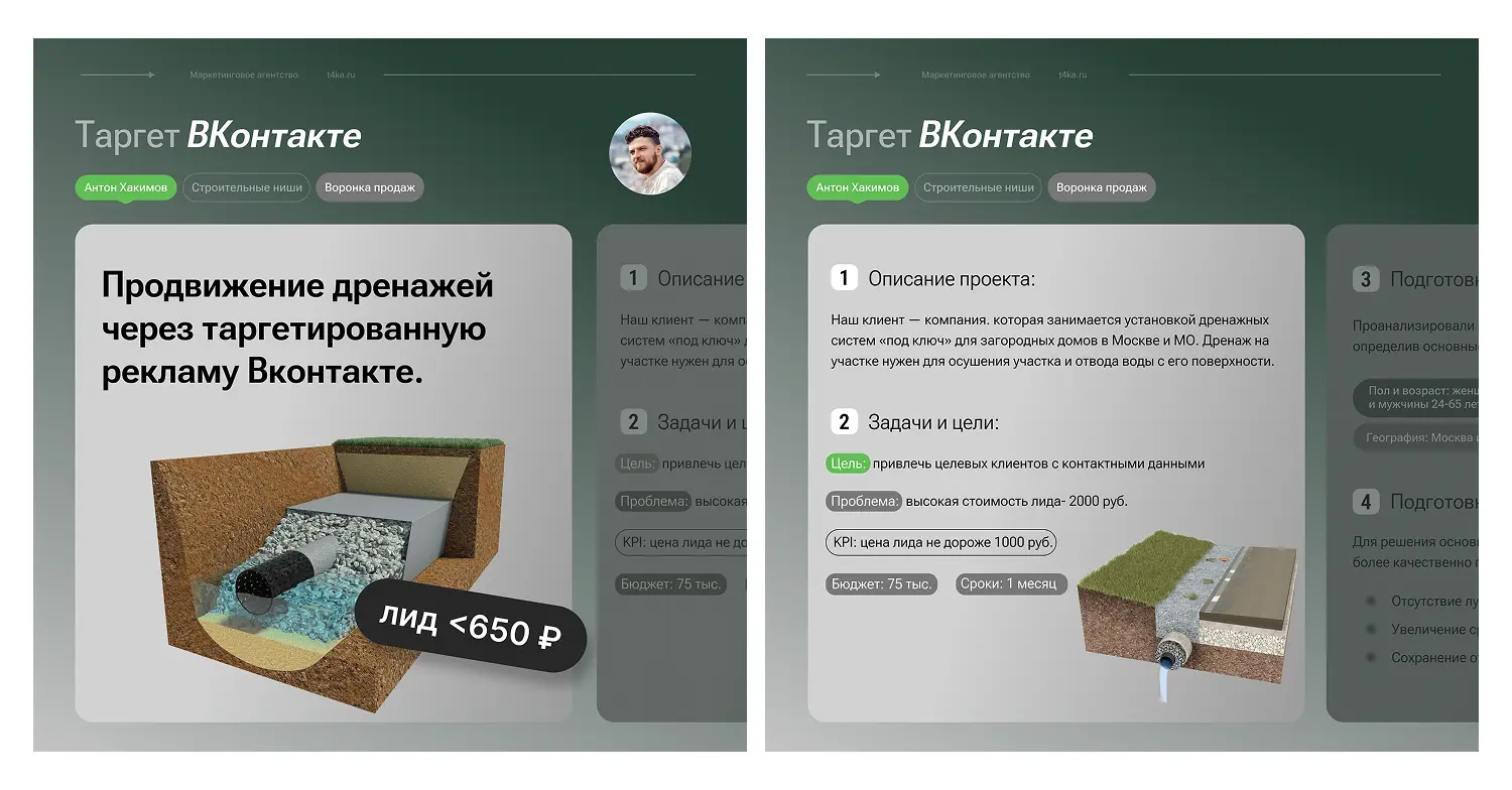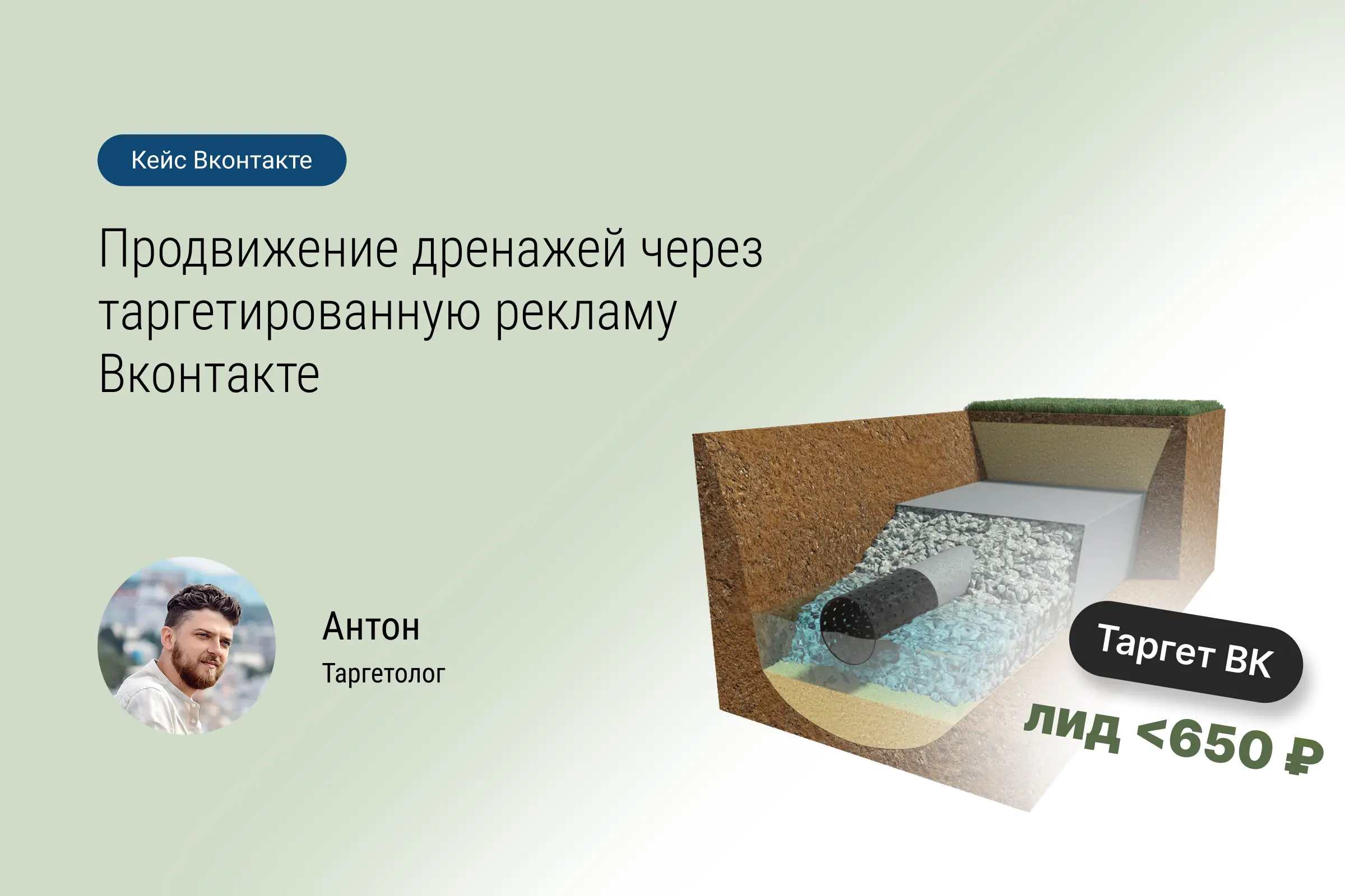 Мы — агентство таргетированной рекламы «В точку», в этом кейсе рассказываем о том, как нам удалось организовать эффективную лидогенерацию для фирмы по устройству дренажа участков, значительно повысить рентабельность рекламы во ВКонтакте и превзойти ожидания заказчика.