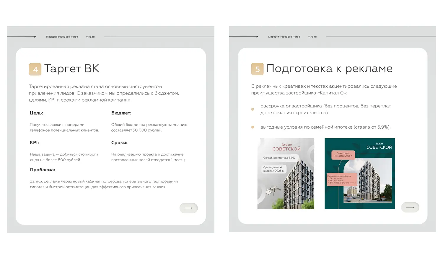 Мы разработали четкую систему подготовки рекламных кампаний, потому что наша цель — не просто клики, а реальные заявки на покупку квартир.