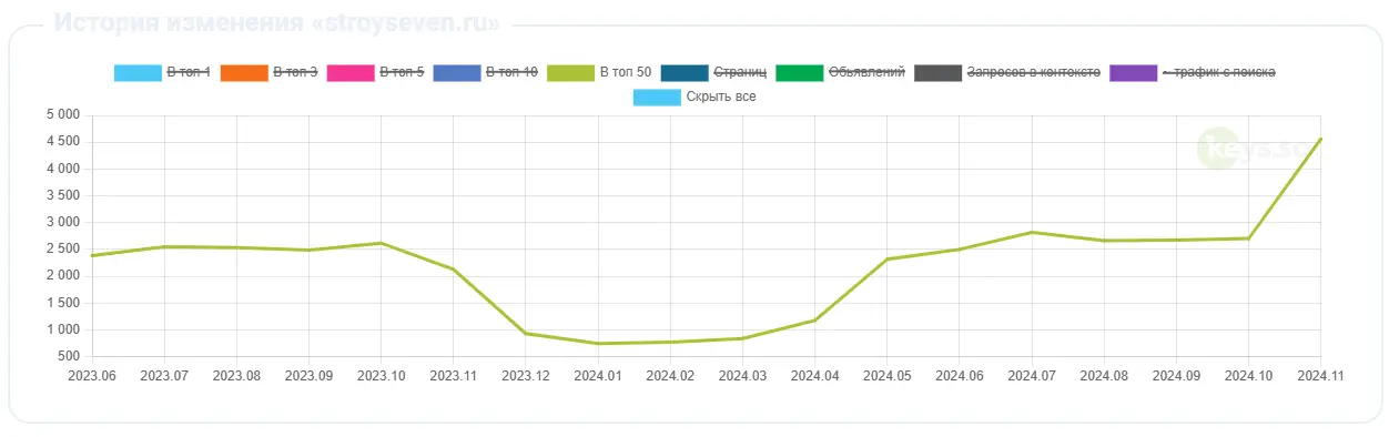 Несмотря на сложности, с которыми мы столкнулись в процессе SEO-оптимизации и продвижения сайта, нам удалось добиться впечатляющих результатов, значительно превзойдя первоначальные показатели: