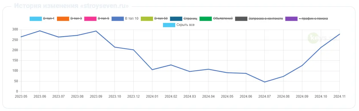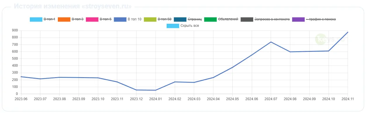 ТОП-10: с 56 до 877 ключевых слов (+821)