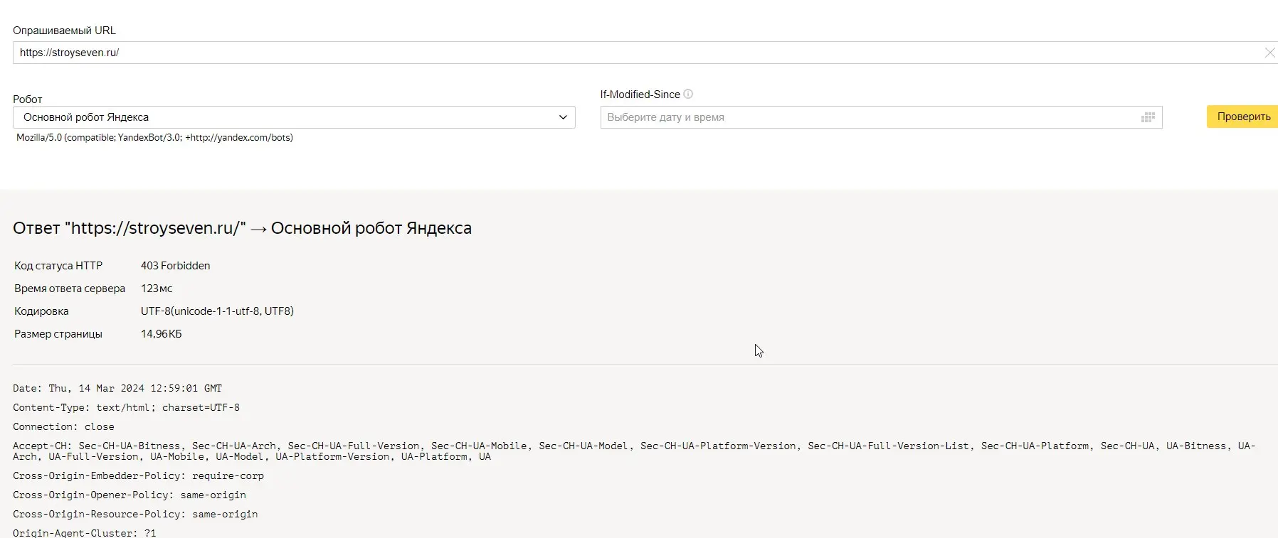 В марте-апреле 2024 года нами была обнаружена блокировка доступа поисковых роботов к сайту. Причиной стала некорректная настройка сервиса CloudFlare, осуществлявшего защиту от прямых заходов на ресурс.