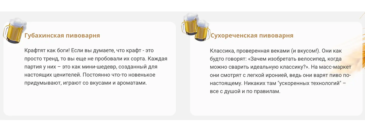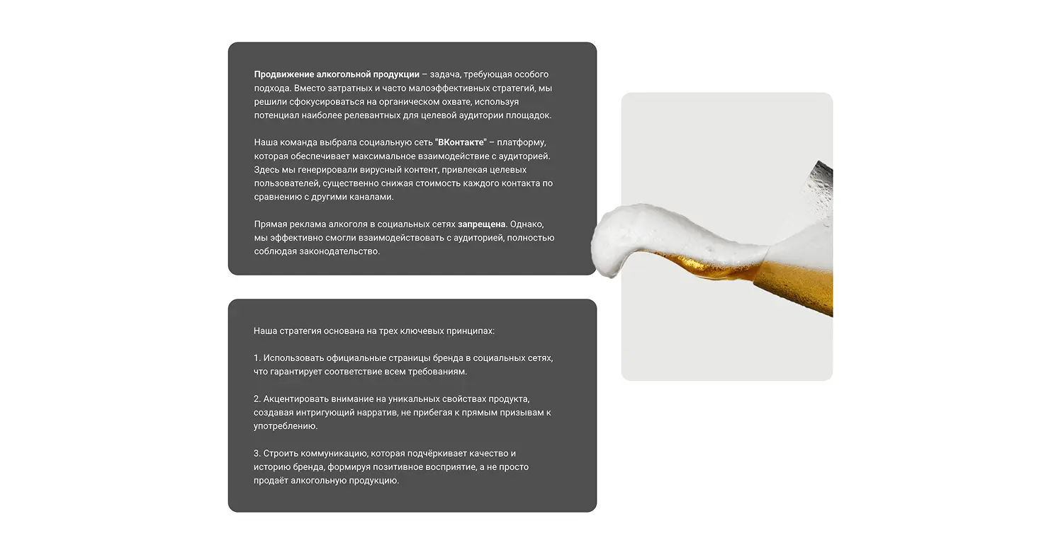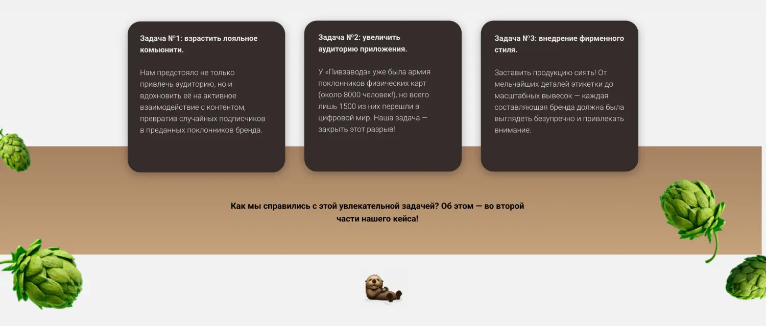 Зацепил нас этот проект, не скроем. У нас тут собрались настоящие пивные сомелье digital-маркетинга, так что за такой проект грех не взяться. Хочется показать людям, что хороший пивной магазин с большим выбором — это совсем другой уровень, а не обычная наливайка.