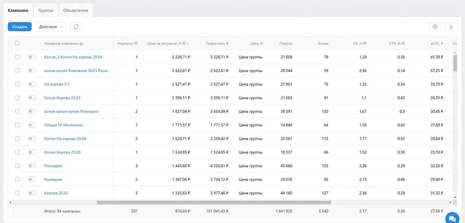 KPI: Стоимость лида не дороже 1 200 рублей для обеспечения рентабельности.
