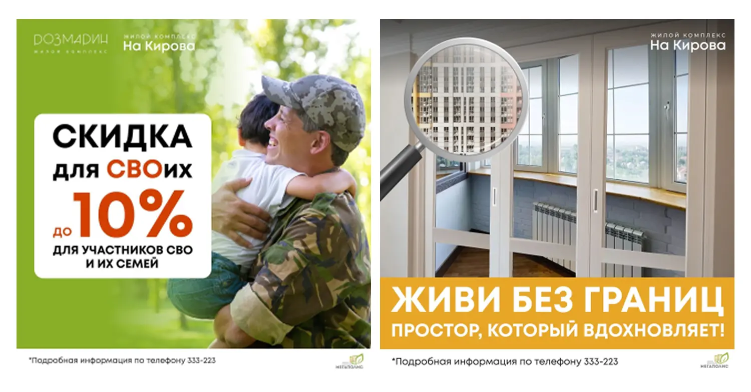 В рекламных креативах и текстах акцентировались следующие преимущества застройщика: