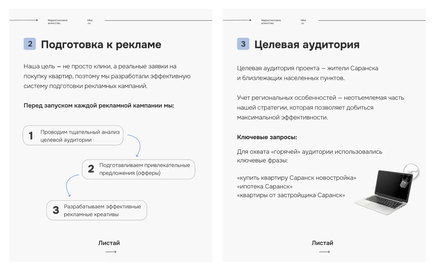 Мы — эксперты по привлечению клиентов в сфере недвижимости. В этом проекте фокус был сделан на целевой аудитории Саранска