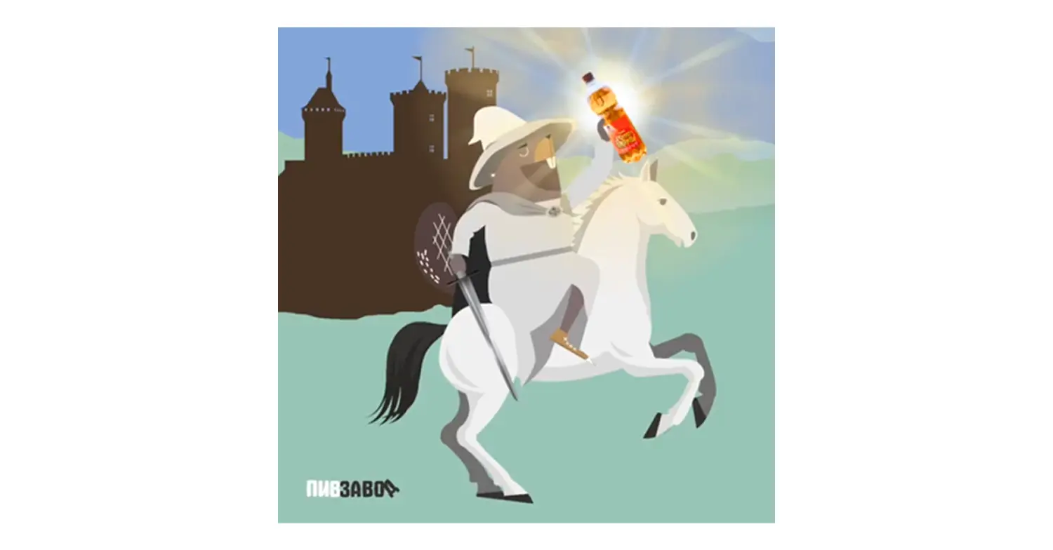 Переодеть нашего маскота-бобра в Гэндальфа из «Властелина колец», наложить ту самую музыку с цитатой «Я приду на пятый день… с первым лучом солнца», и сделать анимацию, где в руке героя сияет бутылка «Золота Пармы»