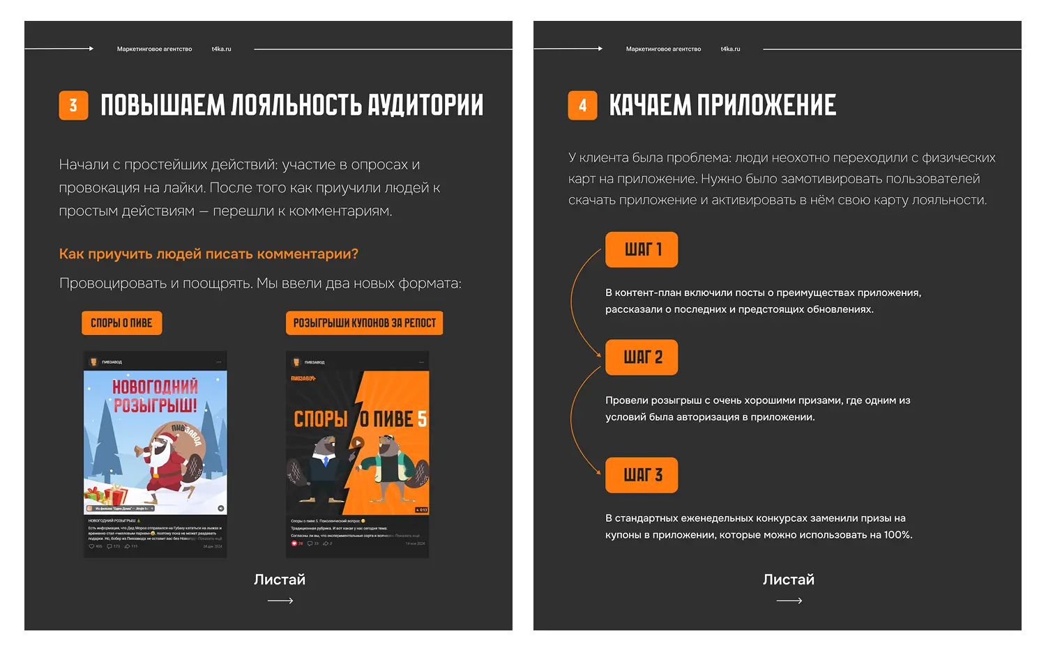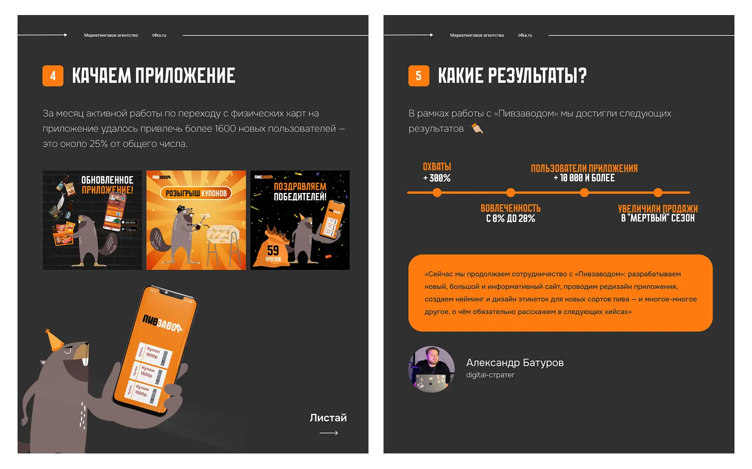 «Сейчас мы продолжаем сотрудничество с «Пивзаводом»: разрабатываем новый, большой и информативный сайт, проводим редизайн приложения, создаем нейминг и дизайн этикеток для новых сортов пива — и многое-многое другое, о чём обязательно расскажем в следующих кейсах.Хотите повторить результат «Пивзавода»? Мы ждём ваших заявок»