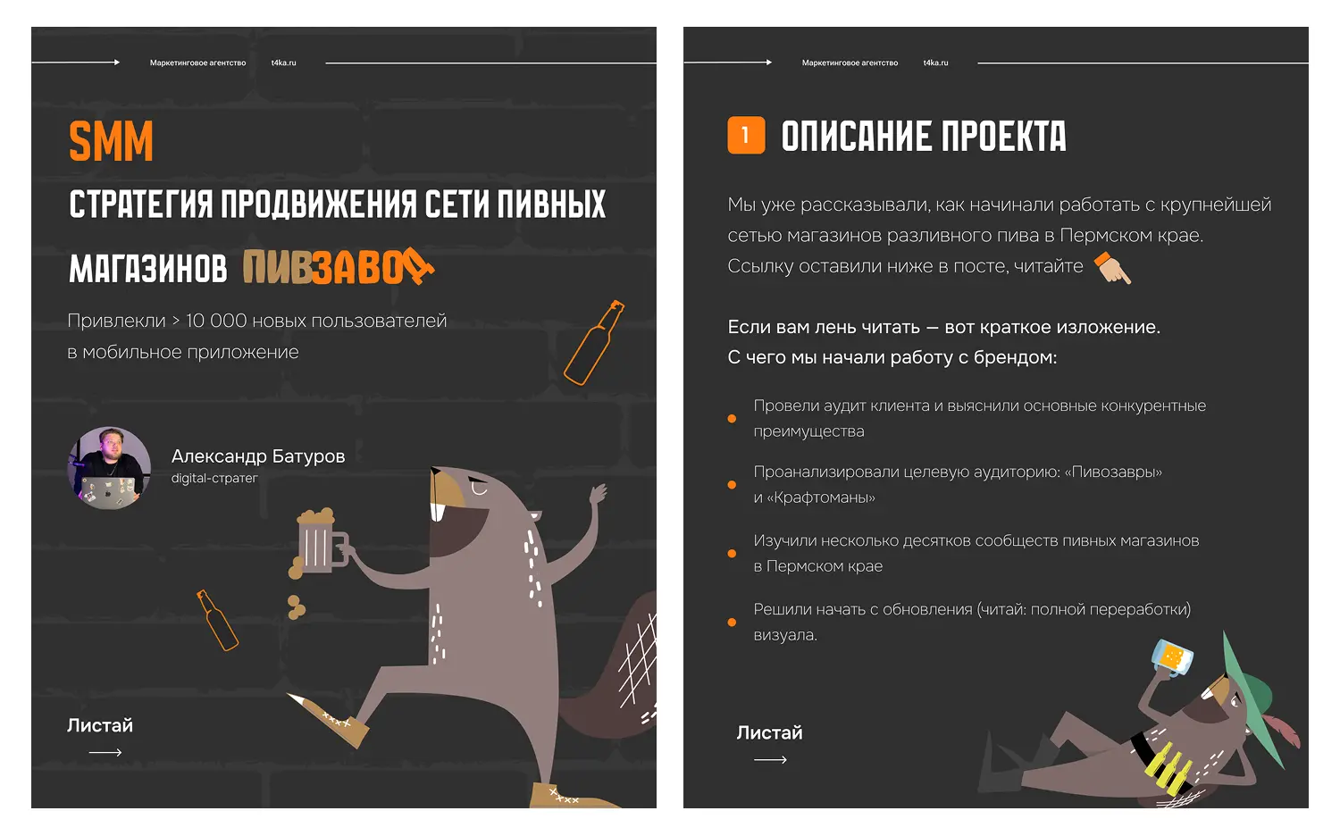 «Я – Александр, диджитал-стратег этого проекта. По невероятному стечению обстоятельств я не только пишу стратегии, но являюсь пивным гиком. Поэтому перспектива поработать с Пивзаводом меня максимально привлекала. Идей нагенерилась масса, нужно было грамотно интегрировать их в саму стратегию»