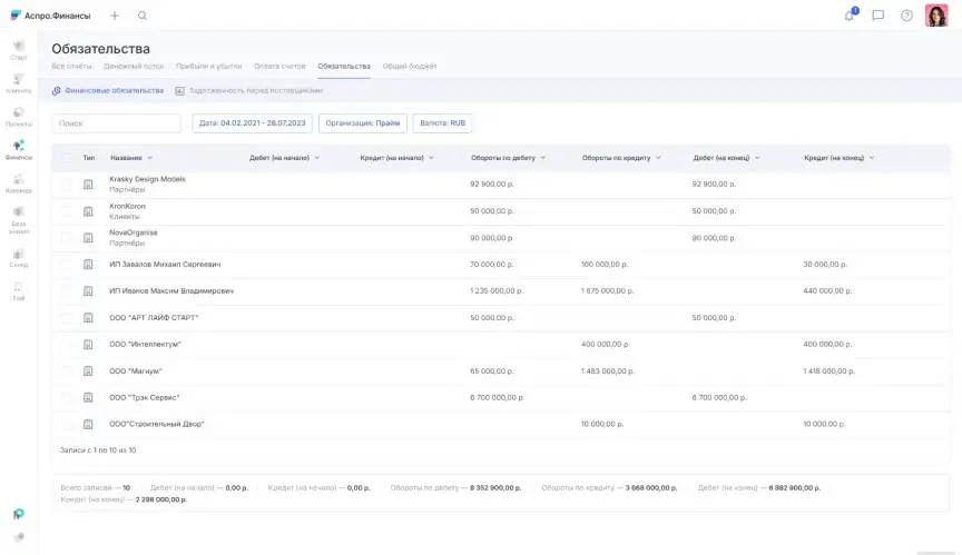 - Детализация любой цифры. Можно открыть любую статью и увидеть, из каких сделок, счетов или оплат она состоит. Все взаимосвязано и прозрачно.