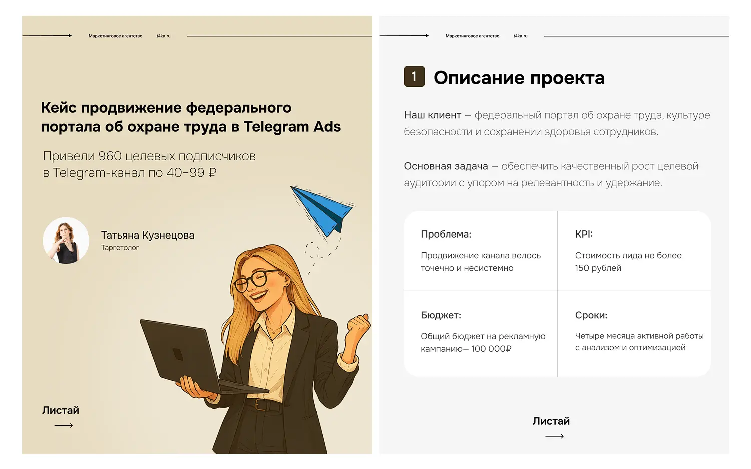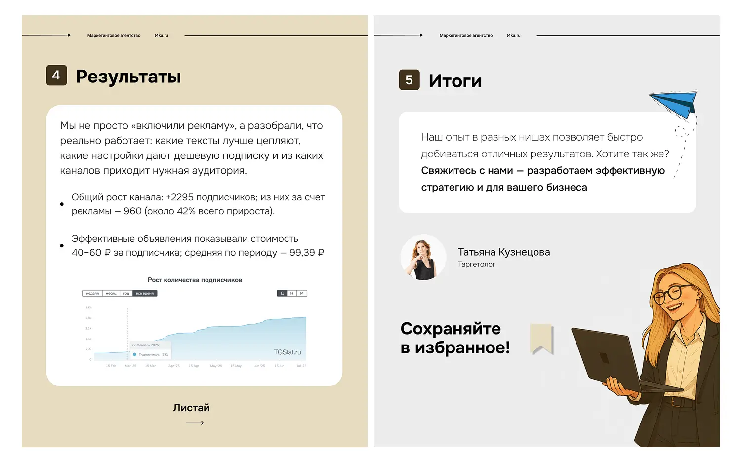 «Привет! Я Таня, таргетолог маркетингового агентства: помогаю каналам в Telegram расти без «сливов» бюджета.В этом кейсе покажу, как с помощью умного таргета, тестов креативов и точной сегментации мы привели 960 подписчиков по цене от 40 до 99 ₽»