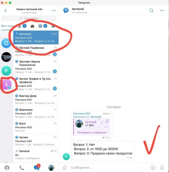 На данный момент это самая быстрая обработка заявок без огромных воронок и десятков блоков доведения заявки до целевого действия в Telegram.