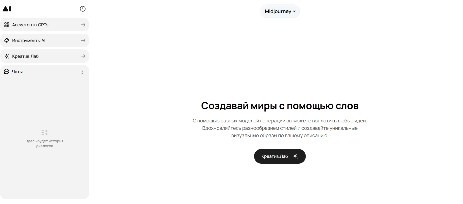 Универсальный российский агрегатор-хаб, объединяющий 100+ передовых AI-моделей, включая мощные генераторы изображений DALL-E, Midjourney, Leonardo.ai и Stable Diffusion, а также текстовые модели ChatGPT, Claude и Gemini для создания детальных промтов и описаний. Платформа работает как профессиональный творческий сервис, позволяя не только генерировать изображения, иллюстрации и коммерческую графику в различных стилях, но и создавать улучшать качество фото и генерировать текстовый контент для визуализации: детальные описания сцен, концепт-арты и маркетинговые материалы.