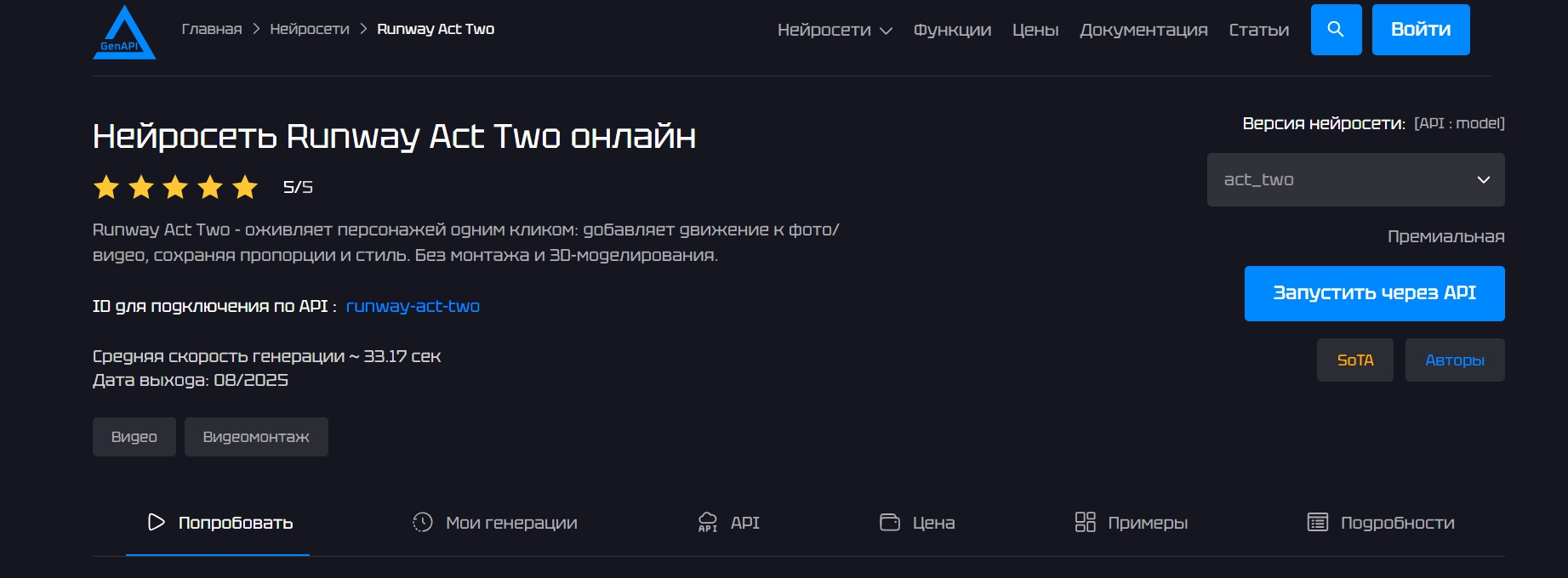 - генерация коротких видеороликов по текстовым описаниям с качеством Full HD;