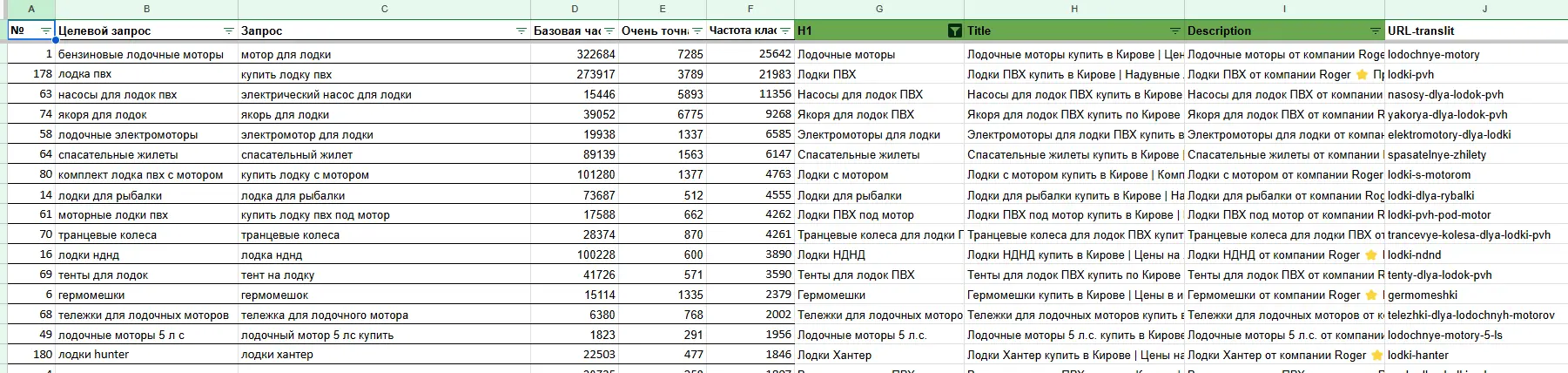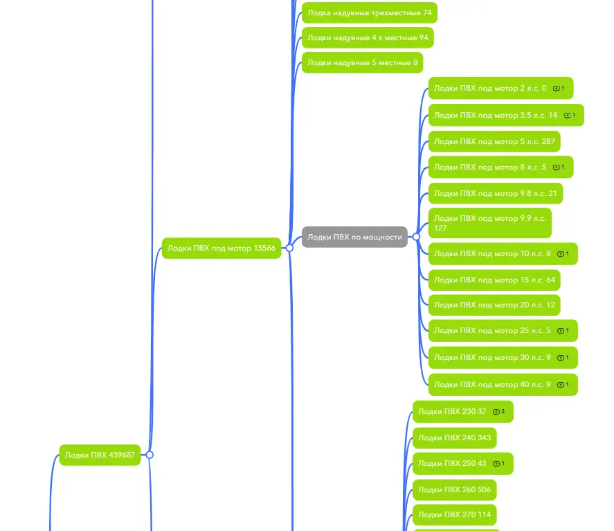 - Создание уникальных подкатегорий по видам, назначению, производителям и ключевым характеристикам (например, надувные, пластиковые, алюминиевые лодки и т.д.)