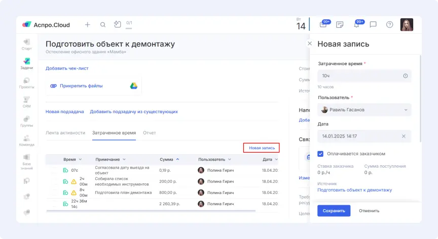 Проекты расползаются по чатам и таблицам? Соберите их в одном месте в Аспро.Cloud и управляйте легко. Попробуйте бесплатно 14 дней.