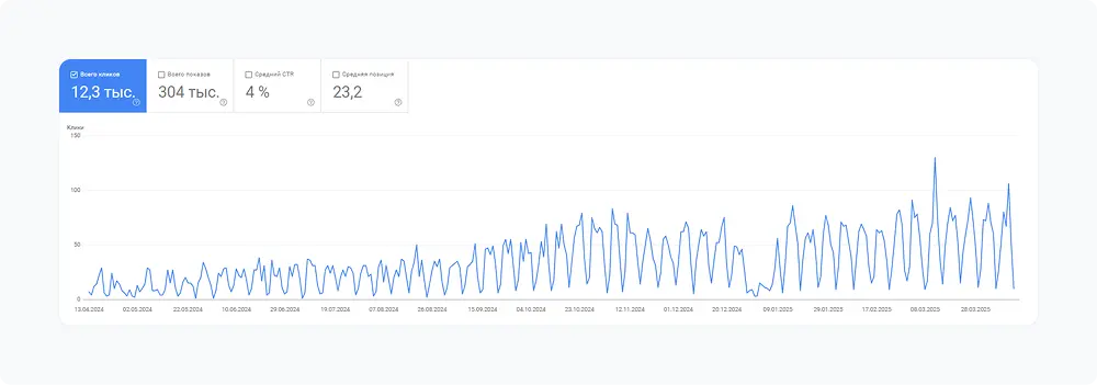 В Google наблюдался рост кликов с 40 до 100 в день, что свидетельствует об эффективности работы с метатегами и микроразметкой.