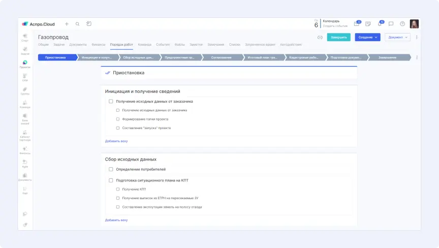 Ключевым инструментом для «ГеоКорп» стали шаблоны проектов. Поскольку все заказы проходят схожие этапы, команда создала универсальную структуру для быстрого запуска новых проектов.