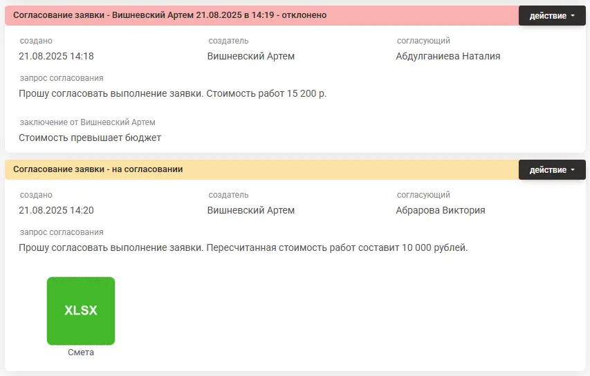 - Согласование заявок