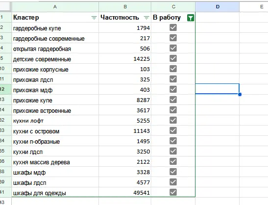 - Дополнение ассортимента. Анализ показал наличие множества продуктовых кластеров, вообще не представленных на сайте. Сюда входили разнообразные типы шкафов, комодов, тумб и иной мебели, пользующиеся высоким спросом.