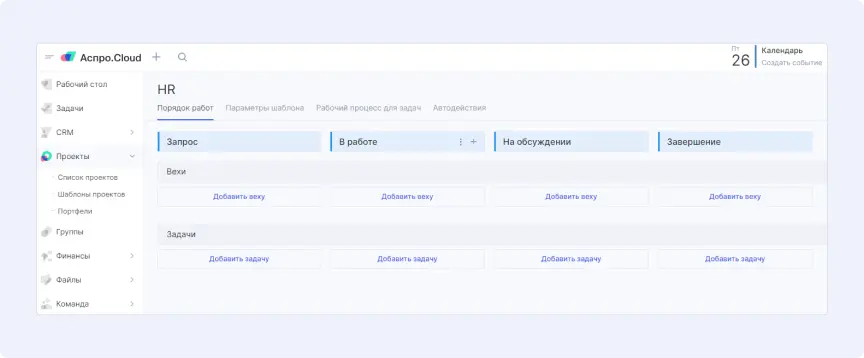 Команде не требовалась полноценная HR-система, поэтому процесс найма также реализовали через проекты: