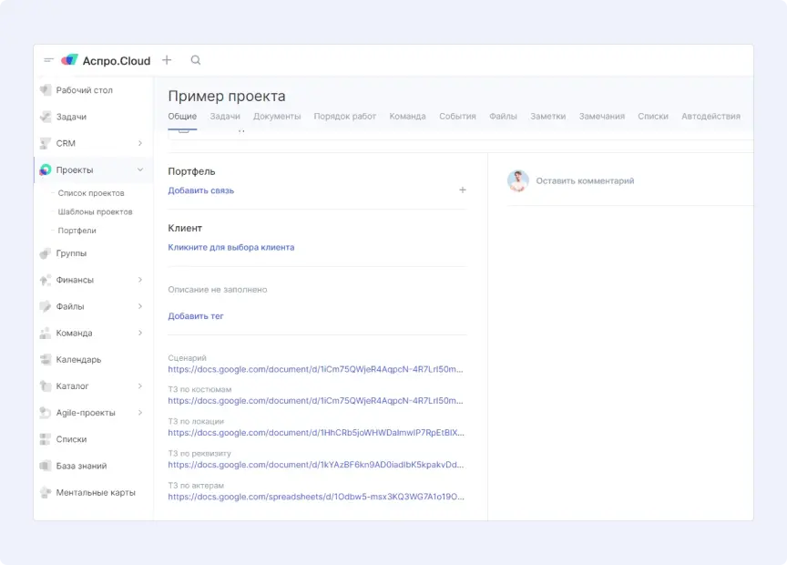 Решение — пользовательские поля в карточке проекта. Теперь все технические задания хранятся в одном месте и доступны всей команде.