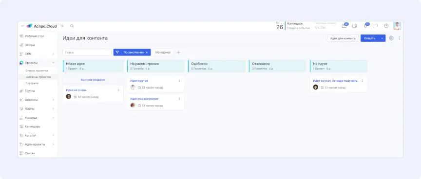 Автоматизация решила главную проблему: когда идею одобряют, система сама закрывает креативный проект и создает производственный с назначенным менеджером.