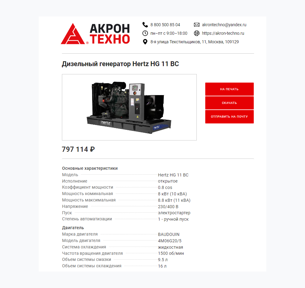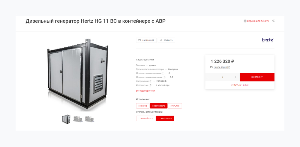 В промышленной сфере решения часто принимаются коллегиально. Учитывая это, в карточки товаров добавили кнопку «Версия для печати».