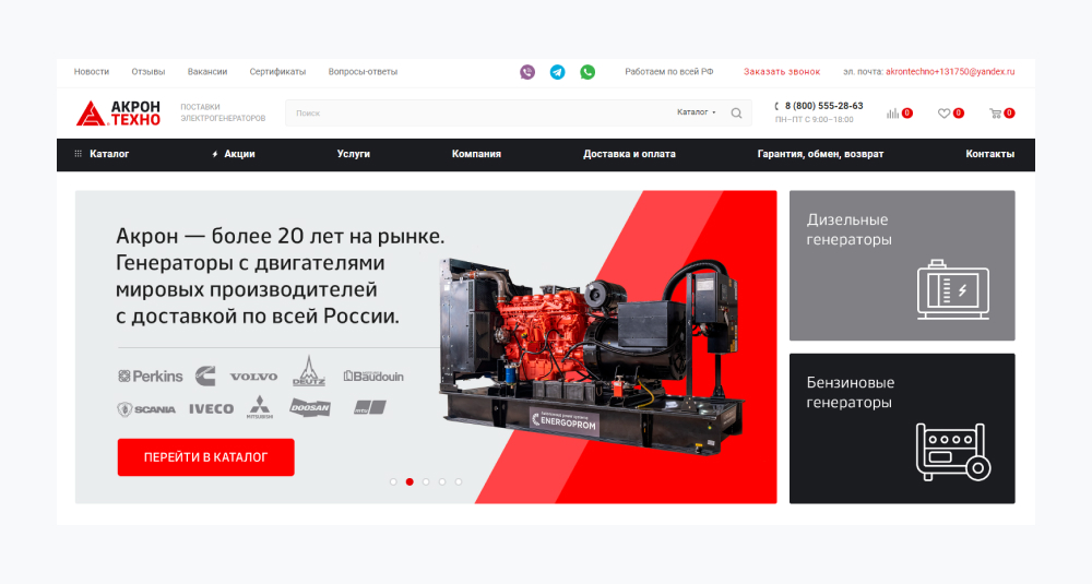 Веб-студия «Четвертый Рим», которая занималась разработкой проекта, провела анализ конкурентов в сфере продажи генераторного оборудования. Результаты оказались неожиданными.
