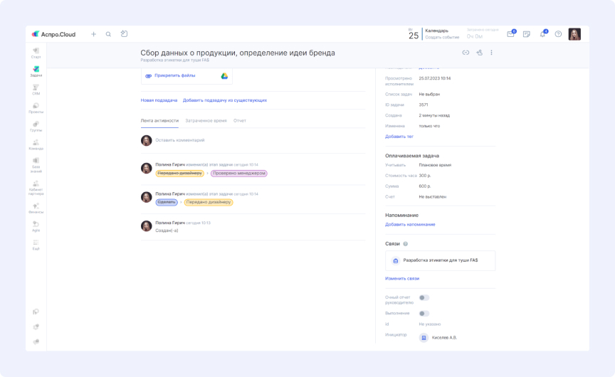 «Аспро.Cloud мы используем больше как систему для планирования, нежели как CRM. Мне, как руководителю, очень удобно следить за работой сотрудников: что делали вчера, что будут делать сегодня. Это помогает быть уверенным в том, что наш клиент получит качественный результат вовремя», — подводит итоги руководитель компании.