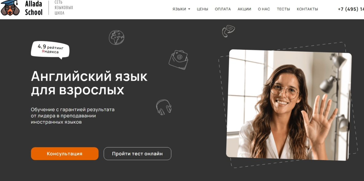 Онлайн-курс английского языка для взрослых от сети школ Allada School создан для тех, кто хочет говорить уверенно, понимать речь носителей и использовать язык в работе, путешествиях и повседневном общении. Программа построена на коммуникативной методике, которая фокусируется на реальных диалогах, ситуациях и активной практике. Уроки проходят в дружественной атмосфере, а преподаватели — выпускники ведущих вузов страны и носители английского языка из разных стран. Курс позволяет развивать ключевые навыки: говорить, понимать, писать и воспринимать иностранную речь на слух. Студенты обучаются на интерактивной платформе, где доступны учебные материалы, подкасты, видеоуроки и упражнения для закрепления знаний.