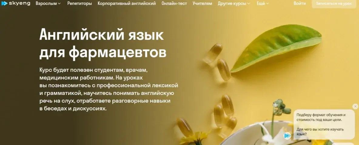 - Английский язык для фармацевтов от Skyeng — интерактивная платформа, разговорные клубы и гибкое расписание, удобное для работающих специалистов.