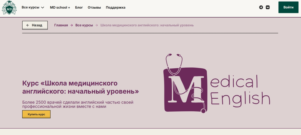 - Школа медицинского английского: начальный уровень от MD School — программа с государственной лицензией и выдачей удостоверения о повышении квалификации с 56 баллами НМО.