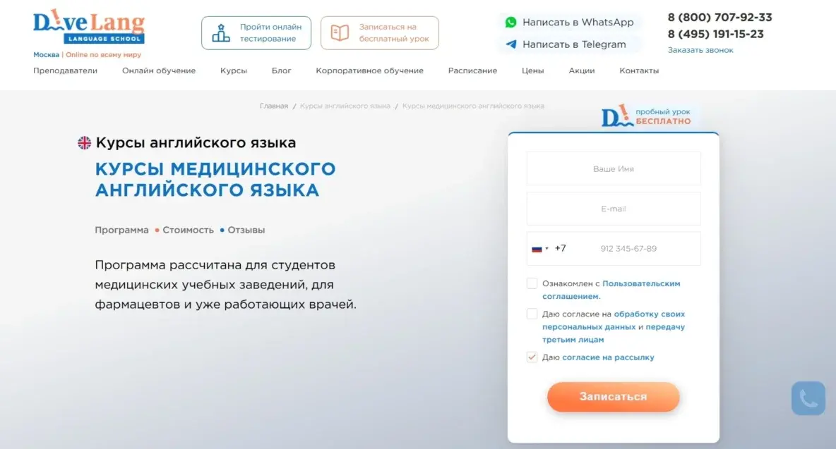 - Курс медицинского английского от Divelang — сочетание очных и онлайн-занятий с преподавателями, имеющими профильное образование, и активная разговорная практика.