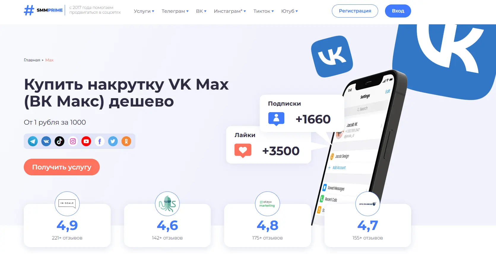 - SMMLAVKA — осуществляет качественную накрутку подписчиков в Макс, не отличимую от естественного прироста аудитории.