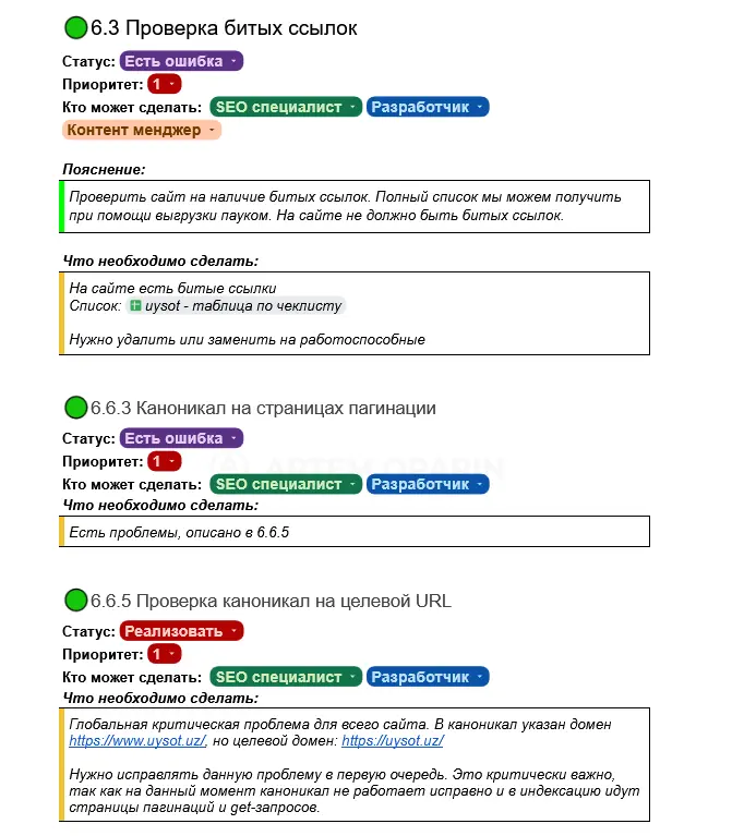 На старте проекта мы провели тщательный аудит сайта https://uysot.uz/ и выявили ряд серьезных проблем, которые требовали незамедлительного решения. Эти проблемы негативно влияли на индексацию сайта поисковыми системами, ранжирование страниц и, как следствие, органический трафик.